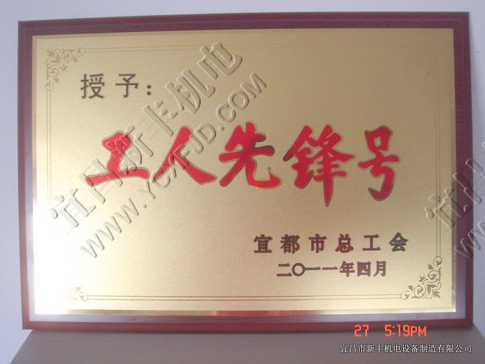 4月27日,宜都市舉行2010年度“爭當先鋒號、建功新宜都”勞動競賽活動表彰大會,宜昌市新豐機電設備制造有限公司結構車間被宜都市總工會授予“工人先鋒號”稱號,宜昌市新豐機電設備制造有限公司線切割成型加工員工辛世蘭獲“革新一項操作方法獎”、宜昌京都電子科技有限公司技術部部長薛傳獲“創造一批優質產品獎”…