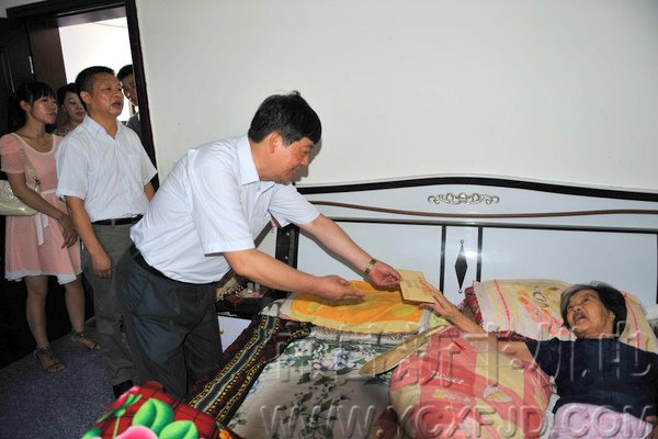 7月1日,在紀(jì)念建黨90周年之際,宜昌市新豐機(jī)電公司黨支部書記、董事長(zhǎng)張本新同志,帶領(lǐng)公司15名黨員看望和慰問(wèn)了陸城中筆社區(qū)五組77歲癱瘓?jiān)诖驳睦宵h員朱裕英同志。將全體黨員捐獻(xiàn)的慰問(wèn)金2000元送到朱裕英同志手中。